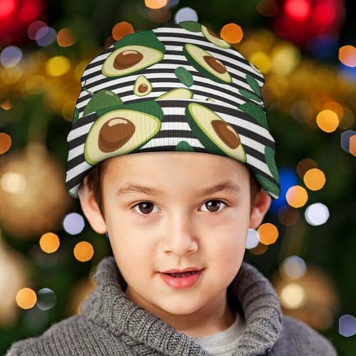 Avocado on Stripe Kids Beanie Hat for for Girls Boys Children Cap Winter Knitted Chemo Cancer Headwear Accessories Gifts Decoration Black 7
