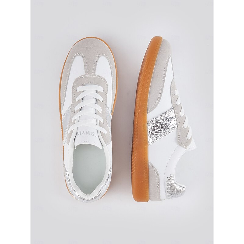 Women's Retro Black and White Lace-Up Sneakers - Casual Low-Top Design with Suede and Fabric Accents, Comfortable Sole for Daily Wear and Sports Activities 21