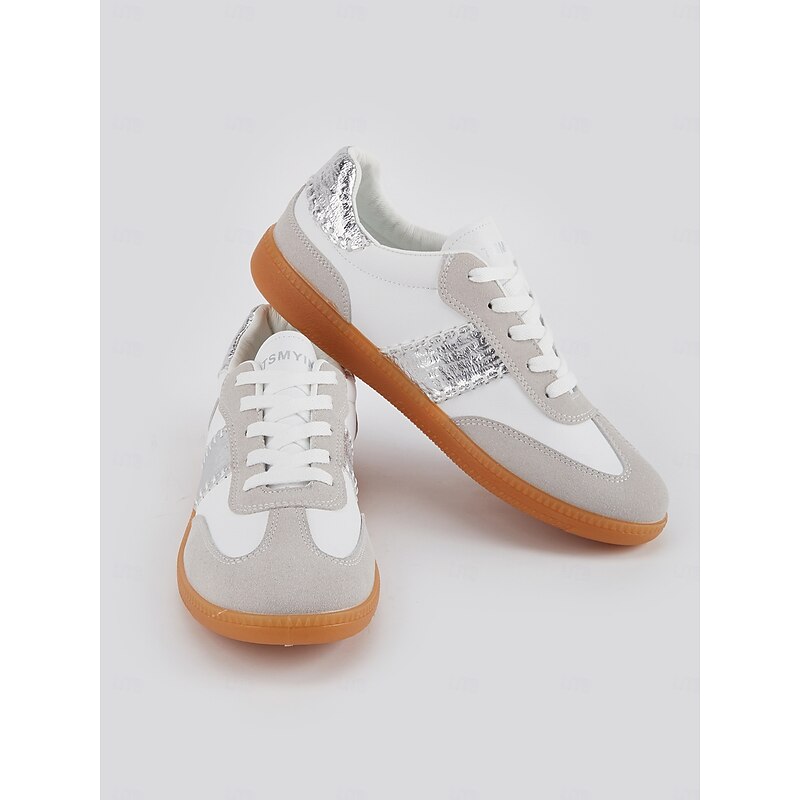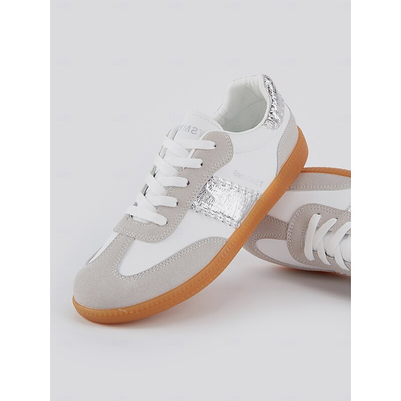 Women's Retro Black and White Lace-Up Sneakers - Casual Low-Top Design with Suede and Fabric Accents, Comfortable Sole for Daily Wear and Sports Activities 1