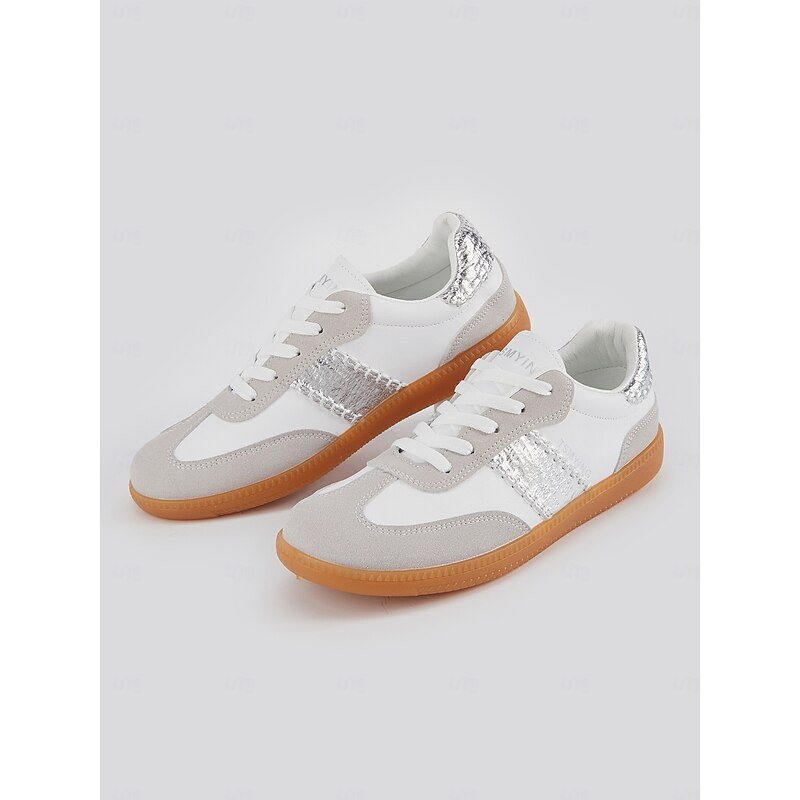 Women's Retro Black and White Lace-Up Sneakers - Casual Low-Top Design with Suede and Fabric Accents, Comfortable Sole for Daily Wear and Sports Activities 23