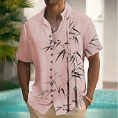 More information about Men's Leaf Plants Bamboo Shirt Button Up Shirt Stand Collar Shirt Short Sleeves Fashion Casual Vacation Beach Wear Summer Spring Grandad Collar Mandarin Collar 3D Print Linen Like Shirt Pink Green