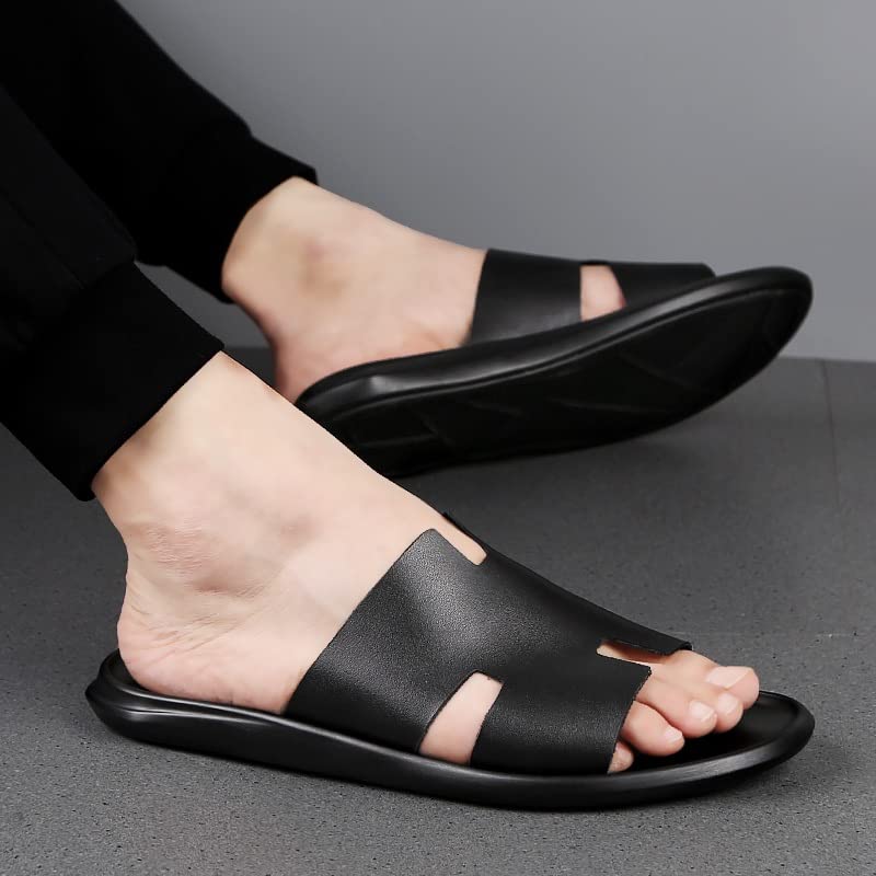 Big Size Genuine Leather Men Sandals Cowhide Summer Sandals Quality Men Slippers Casual Outdoor Beach Shoes(Black,10) 6