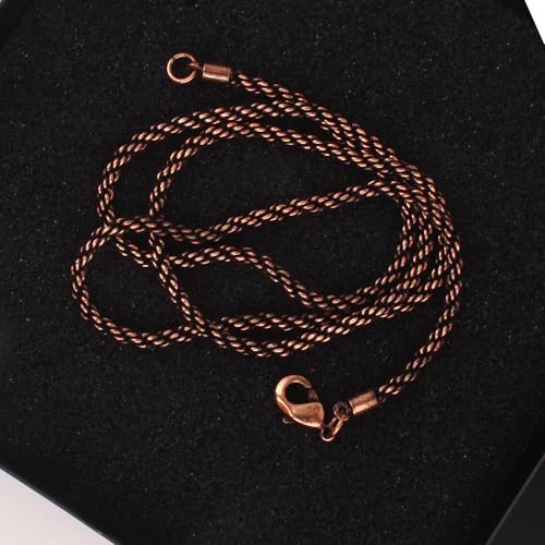 Material: CopperMetal type: CopperClasp type: Spring RingChain type: LinkGem type: No GemstoneDURABLE DESIGN: Constructed entirely from solid copper, this rope chain necklace withstands daily wear and resists tarnishing better than other base metals.QUALITY CRAFTSMANSHIP. Heliwale works with indian cccccartisan to craft this item.HANDCRAFTED QUALITY: Each rope chain necklace is meticulously handmade by skilled artisans, ensuring outstanding durability, precision of links, and fine surface details in the oxidized finish.VERSATILE STYLE: The rope-like links create a distinctive texture that can be worn casually or dressed up to complement a variety of outfits for any occasion.