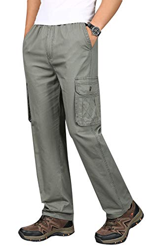 HOT ! Men's Twill Straight Leg Elastic Waist Workwear Zip Fly Pull On Cargo Pants