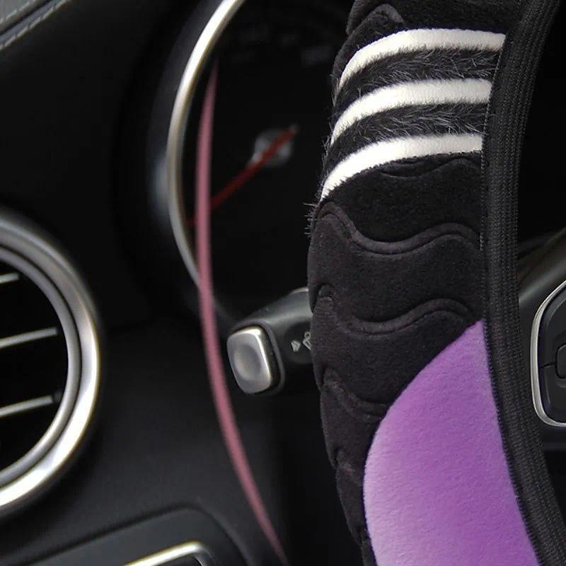 Plush Anti-Slip Car Steering Wheel Cover - Universal 15 Inch Protector for Comfortable Driving - Little Monster Design Accessory 21