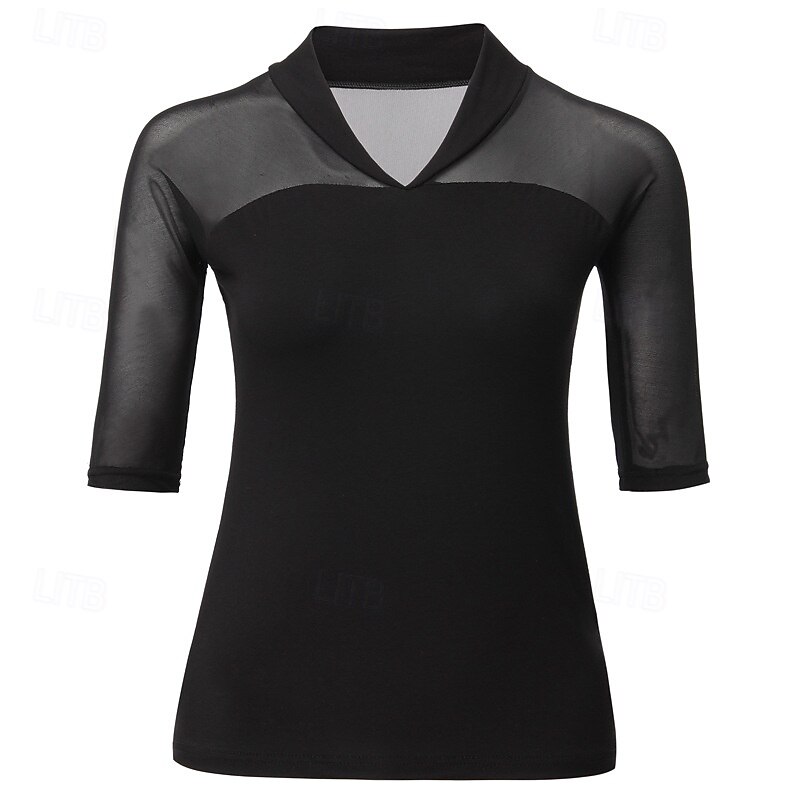 Latin Dance Top Pure Color Splicing Tulle Women's Performance Training Half Sleeve High Polyester 1