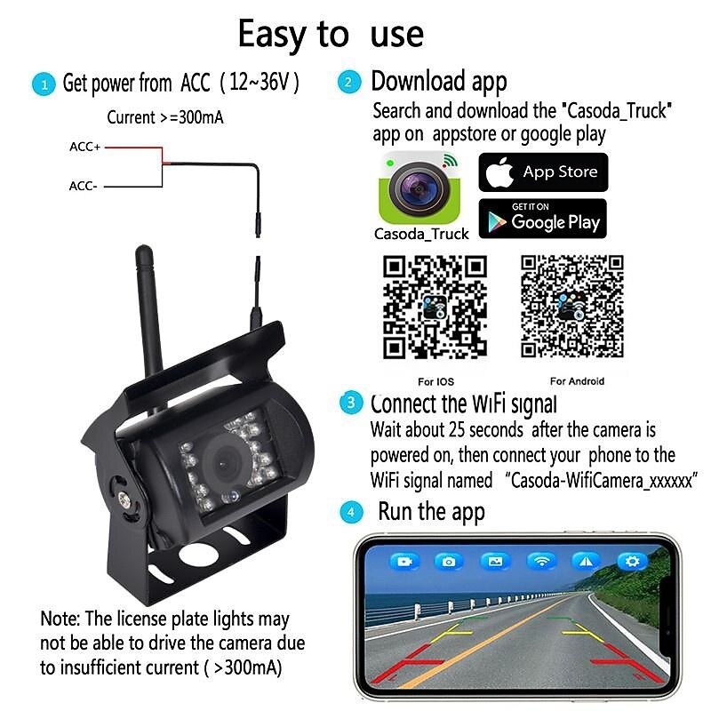 Car WIFI Night Vision Reversing Camera Backup Camera Bus Truck Reversing Camera for IPhone/Android 14