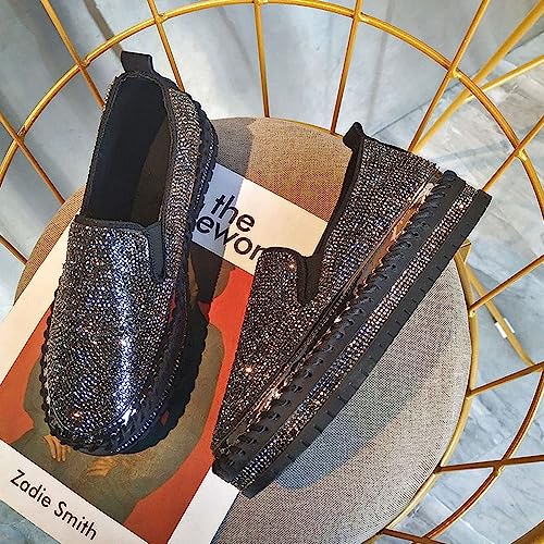 Women's Rhinestones Glitter Fashion Dress Sneakers Slip on Platform Loafers Party Wedding Bling Casual Flat Shoes 7