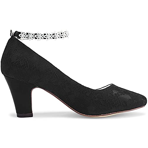 JIAJIA 62311A Women's Bridal Shoes Closed Toe 2.7" Chunky Heel Lace Satin Pumps Satin Flower Wedding Shoes 5
