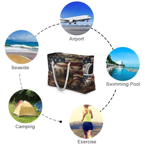 Why Choose Baseball and American Beach Bag for Women Large Beach Tote Bag with Zipper for Travel Vacation?