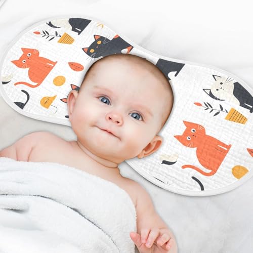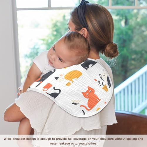 2 Pack Baby Burp Cloths, Soft Absorbent Burping Cloths for Babies, Cotton Milk Spit Up Rags, Large Size for Newborns, Baby Boys and Girls (Cartoon Cat Set) 5