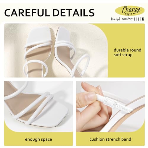 IDIFU IN3 High Heels Strappy Chunky Block Heels Square Toe Three Strap Slip On Heels Comfortable Slides Heeled Sandals Sexy Wedding Party Dress Shoes Open Toe Mules Heels for Women 4