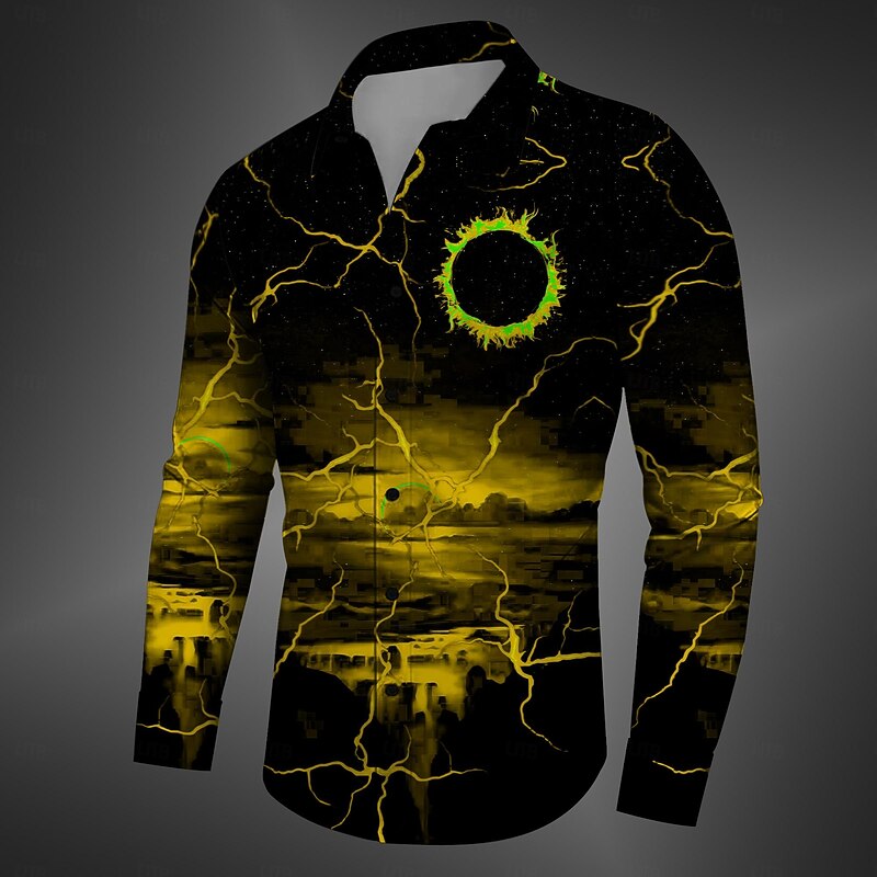 More information about Men's Spooky Moon Halloween Costumes Shirt Button Up Shirt Long Sleeve Casual Dark Daily Fall Winter Spring & Summer Turndown Shirt Collar Button Up 3D Print Black Yellow Red Blue Fuchsia