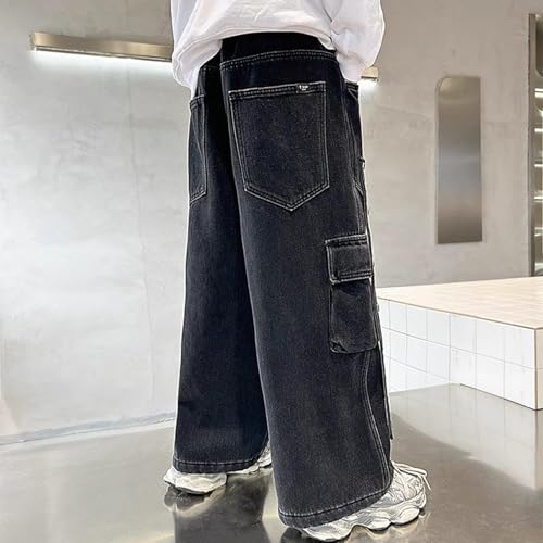 HOT ! Boys Baggy Cargo Jeans Elastic High Waist Kids Straight Wide Leg Hip Hop Pants with Pockets Vintage Casual Jeans Y2k