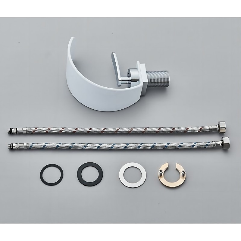 More information about Waterfall Bathroom Faucet Sink Mixer Basin Taps, Arc Spout Single Handle Washroom Faucet Deck Mounted with Cold and Hot Hose Black Chrome White