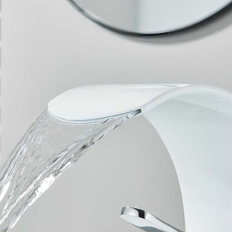Waterfall Bathroom Faucet Sink Mixer Basin Taps, Arc Spout Single Handle Washroom Faucet Deck Mounted with Cold and Hot Hose Black Chrome White
