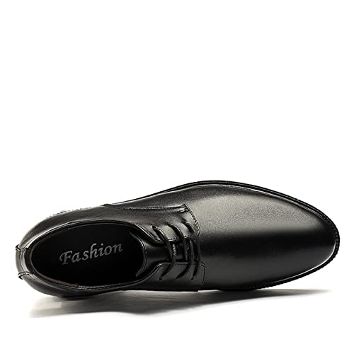 HOT ! Dress Oxford Shoes for Men Lace Up Height Increasing Elevator Leather Derby Shoes 2.3 Inches Taller Slip Resistant Rubber Sole Low Top Block Heel(Black,10 M US)