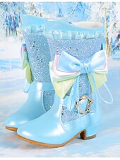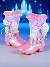 More information about Girl's Pink Glitter Bow Boots -Sparkly Mid-Calf Princess Shoes with Ruffle Trim for Parties, Cosplay, and Dress-Up