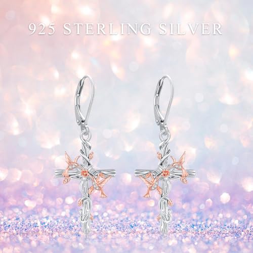 Hummingbird Dangle Earrings 925 Sterling Silver Cross Heart Flower Earrings Hummingbird Leverback Earrings Sunflower Bird Earrings Animal Earrings Mother and Daughter Earrings Hummingbird Jewelry Gift Birthday 1