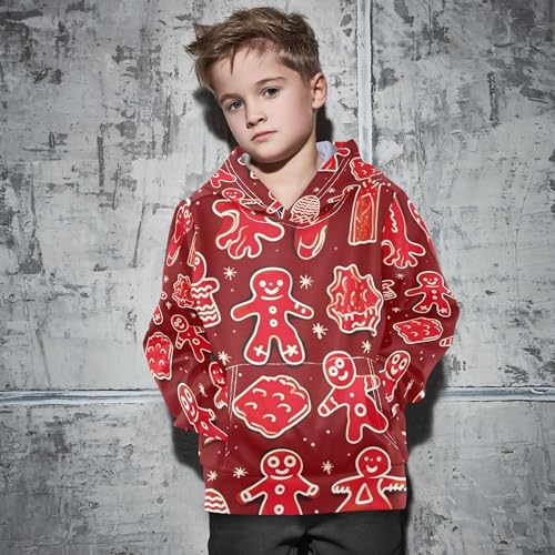 Kids Hoodies Sweaters Christmas Gingerbread Man Hooded Sweatshirts with Big Pockets for Boys Girls B0400408 5