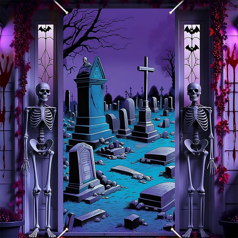 More information about Halloween Posters Door Cover Outdoor Banners Cemetery 3D Dark Punk Gothic Style Party Dorm Teens Room College Dorm Guys Man Cave Frat Bedroom Shooting Backgrounds Home Decor