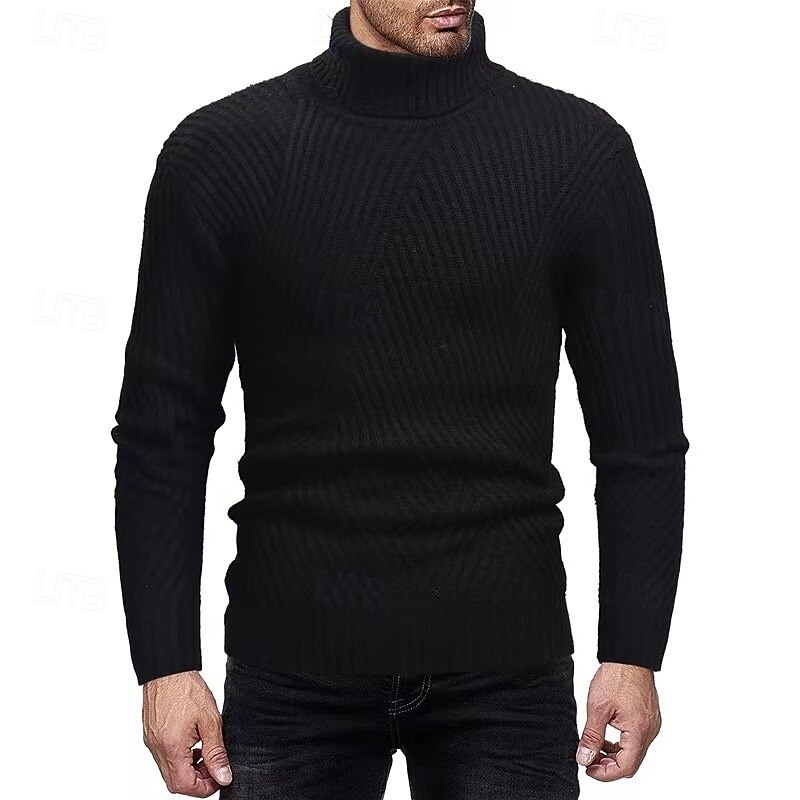 More information about Men's Sweater Pullover Sweater Jumper Ribbed Knit Regular Tops Knitted Slim Fit Plain Turtleneck Knitwear Contemporary Casual Daily Wear Clothing Apparel Fall Black White S M L