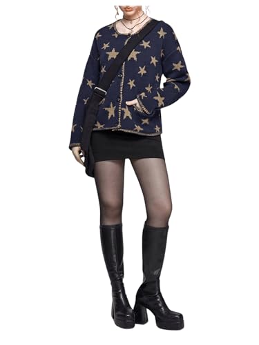 HOT ! SOLY HUX Women's Star Print Cardigan Button Down Round Neck Long Sleeve Casual Sweater with Pockets