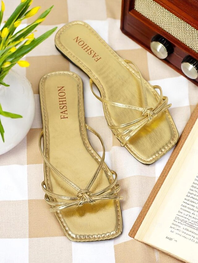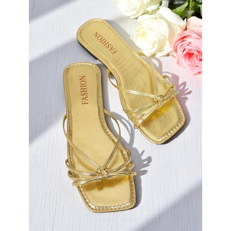 HOT ! Women's Gold Flat Sandals with Crisscross Design - Stylish Flat Sandals for Date Nights and Daily Wear