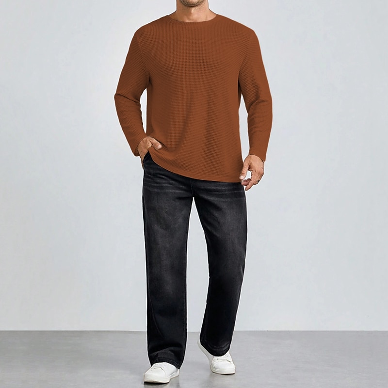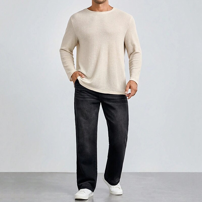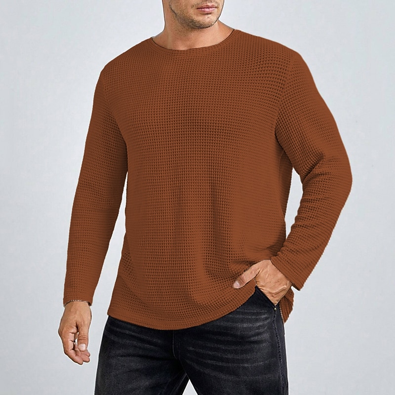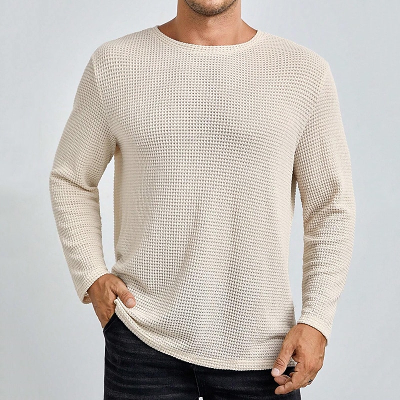 More information about Men's Waffle Tee T Shirt Waffle Knit Tee Tee Top Long Sleeve Crew Neck Spring & Fall Plain Fashion Designer Basic Knit Vacation Street Going out White Khaki Top Tee for Men