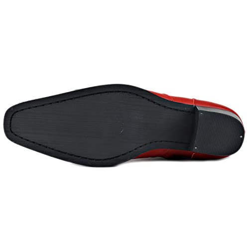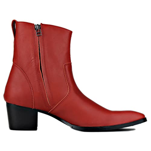 OSSTONE Dress Boot for Men Leather Chelsea Boots Calfskin Casual Heel Shoes Zipper-up OS-JY048-Red-R 6