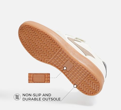 LUCKY STEP Women's Casual Fashion Retro Sneakers Classic Gum Sole Hook and Loop Tennis Footwear Anti Slip Skate Trainers Trendy Walking Shoes 5