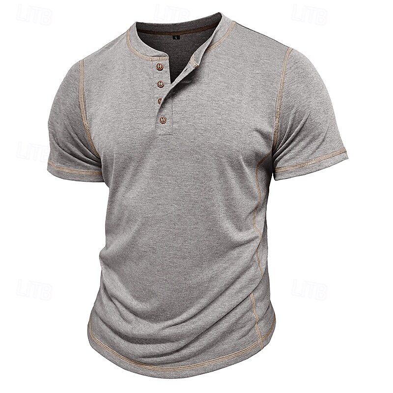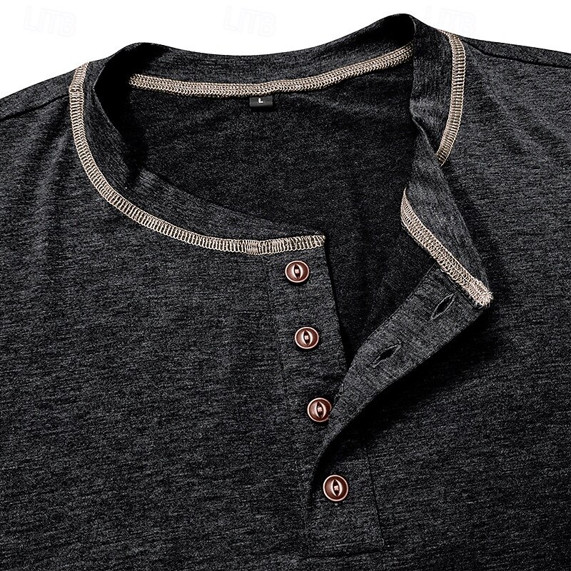 More information about Men's Henley Shirt Cotton Shirt Tee Short Sleeve Solid Color Plain Solid Fashion Designer Casual Color Block Buttons Henley Outdoor Casual Daily Summer Dark Grey Black Blue Henley T-Shirt