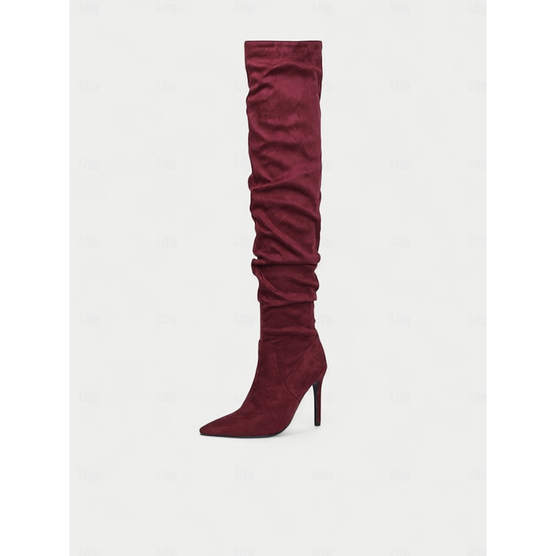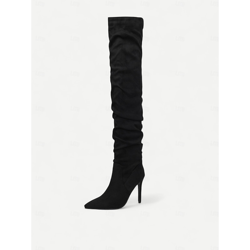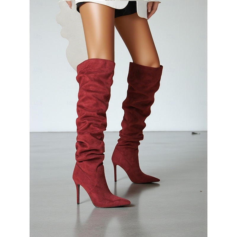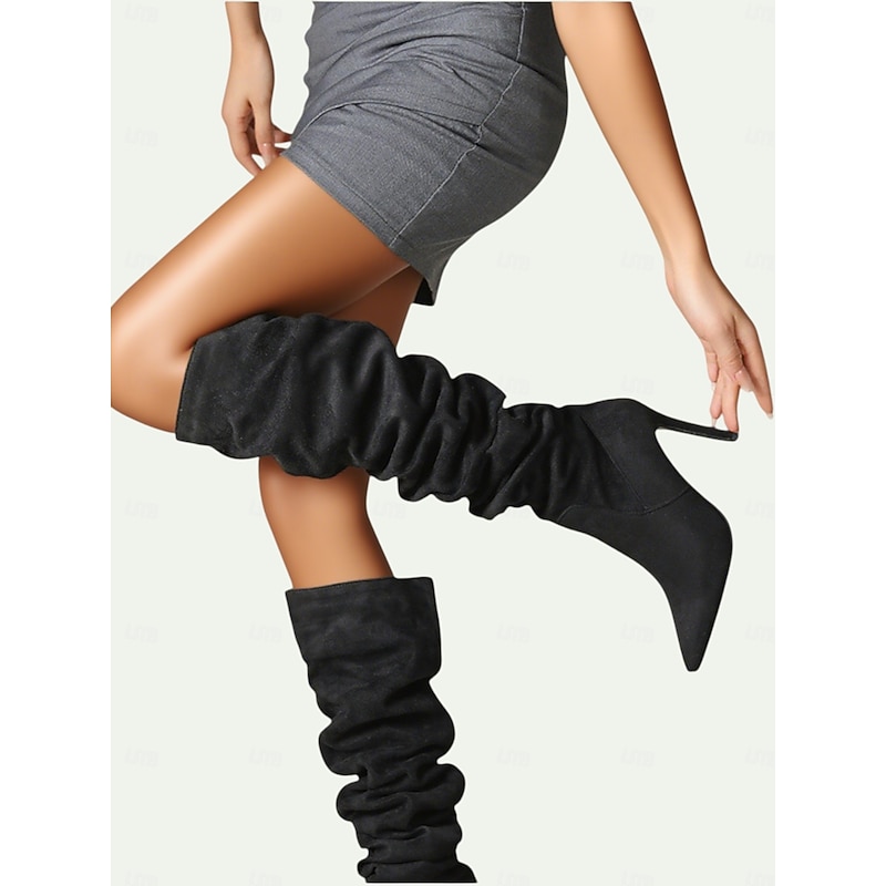 Women's Slouch Knee High Boots with Wide Leg Design, Convertible Over the Knee Style, Suede Pointed Toe Stiletto Heel Boots for Urban Casual Fashion Outfits 23