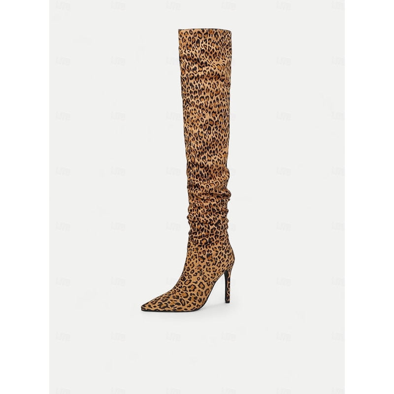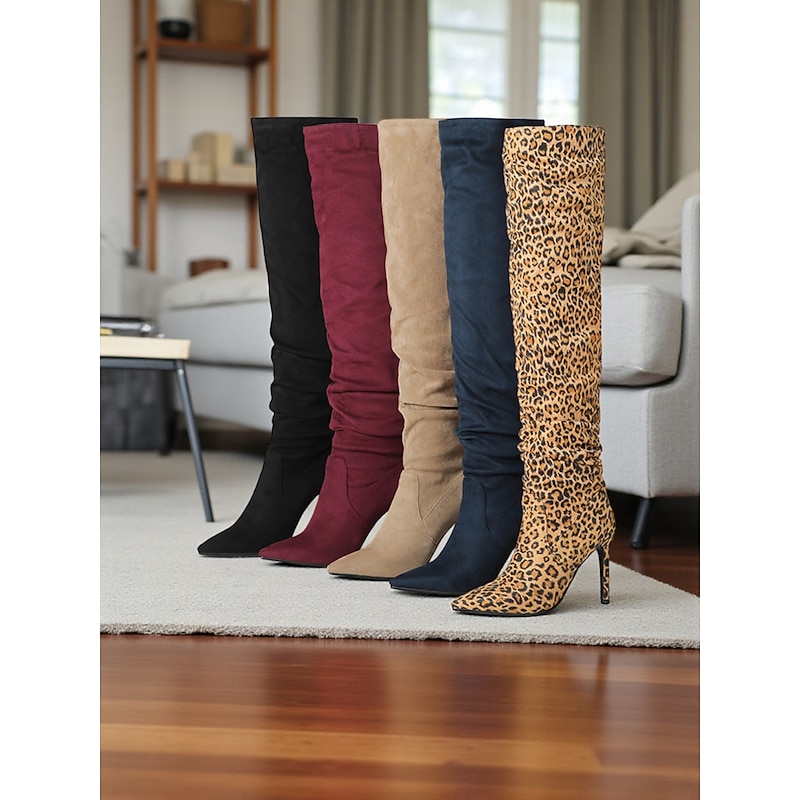 Women's Slouch Knee High Boots with Wide Leg Design, Convertible Over the Knee Style, Suede Pointed Toe Stiletto Heel Boots for Urban Casual Fashion Outfits 24