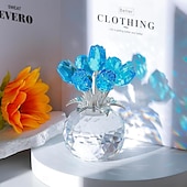 Handmade Crystal Champagne Rose Flower Figurine with Round Vase Romantic Rose Gifts for Women on Wedding Valentine's Chrismas Glass Rose Flowers for Girlfriend Wife Home Table Decorations 21
