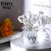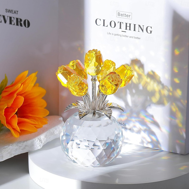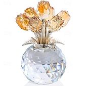 HOT ! Handmade Crystal Champagne Rose Flower Figurine with Round Vase Romantic Rose Gifts for Women on Wedding Valentine's Chrismas Glass Rose Flowers for Girlfriend Wife Home Table Decorations