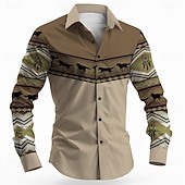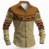More information about Men's Wolf Dream Catcher Ethnic Shirt Button Up Shirt Long Sleeve Vintage Retro Outdoor Camping & Hiking Hunting Spring Fall Turndown 3D Print Collared Shirts Orange Khaki Beige