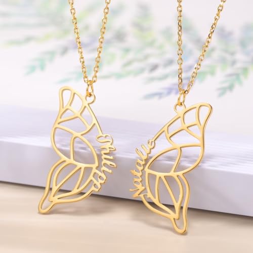 HOT ! Custom 2Pcs BFF Necklace-Split Butterfly Engraved with Names, Matching Best Friend Necklace for 2, 925 Sterling Silver Friendship Necklace Gifts for Women, Best Friend, Sister