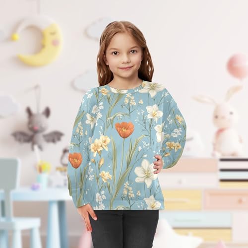 JUNZAN Autumn Flowers Tulips Daffodil Gladiolus Blue Big Boys Hoodie Sweatshirt Crewneck Tops Clothing Shirts Party 4T 4