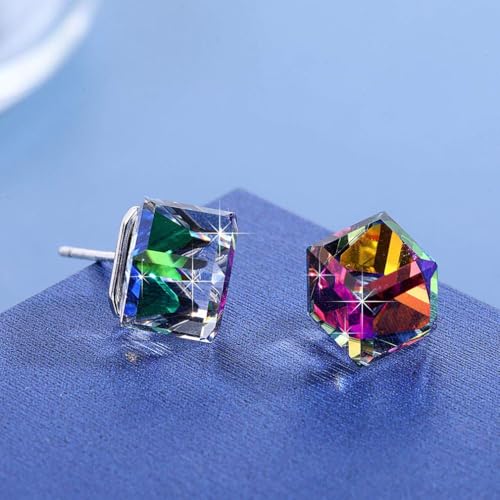 • 【FASHIONABLY STAND OUT】—Trendy Austrian Crystal Drop Earrings Stud,Simple and Fashion Design.Authentic Austrian Flatback Cube Shape,Genuine Austrian Color-changing Crystal,Reflect Different Color In Different Direction.Stud Earrings Size:0.8"(H)*0.3"(W).Cube Crystal:8mm,Butterfly Closures,Easy to put on and take off.Intricate high polish creates glamorous reflections and adds a luxurious look.