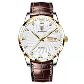 POEDAGAR Men's Quartz Watch Fashion Luxury Casual Men Analog Wrist Watch Leather Strap Calendar Date Week Luminous Waterproof Quartz Men Watches 12