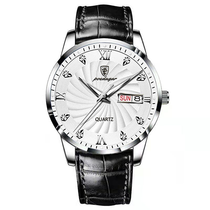 POEDAGAR Men's Quartz Watch Fashion Luxury Casual Men Analog Wrist Watch Leather Strap Calendar Date Week Luminous Waterproof Quartz Men Watches 18
