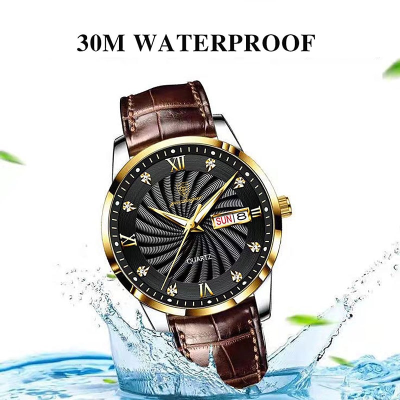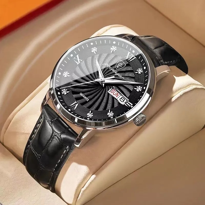 Highlights Product Selling Points: 1. Premium Band Material: Crafted with genuine leather, ensuring a comfortable and durable wearing experience. 2. Convenient Calendar Function: Keep track of dates and plan your schedule effectively with the integrated calendar feature. 3. Enhanced Visibility in Low-Light Conditions: The noctilucent feature enables the watch to glow in the dark, providing easy readability at night or in dimly lit environments.