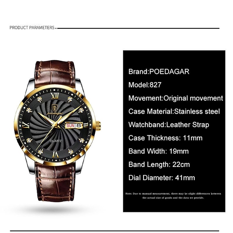 More information about POEDAGAR Men's Quartz Watch Fashion Luxury Casual Men Analog Wrist Watch Leather Strap Calendar Date Week Luminous Waterproof Quartz Men Watches
