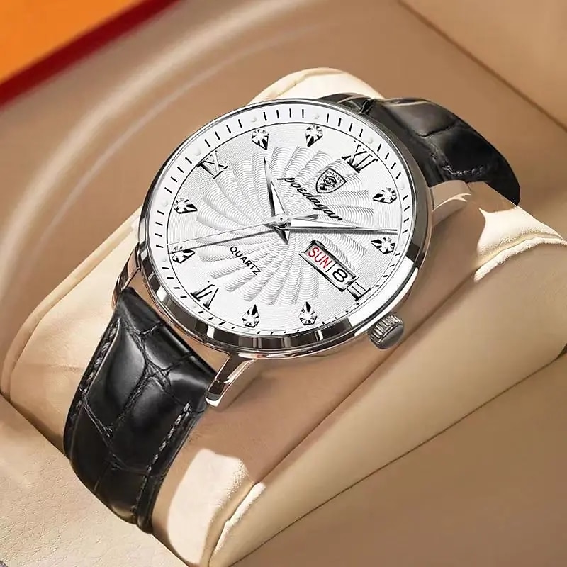 POEDAGAR Men's Quartz Watch Fashion Luxury Casual Men Analog Wrist Watch Leather Strap Calendar Date Week Luminous Waterproof Quartz Men Watches 1