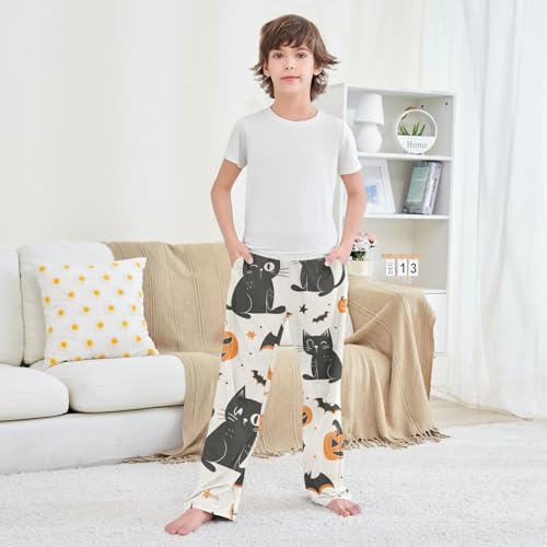 Halloween Cat Pumpkin Boys Long Pants Soft Trousers Elastic Waist Kids Lounge Bottoms with Pockets S-XL 4