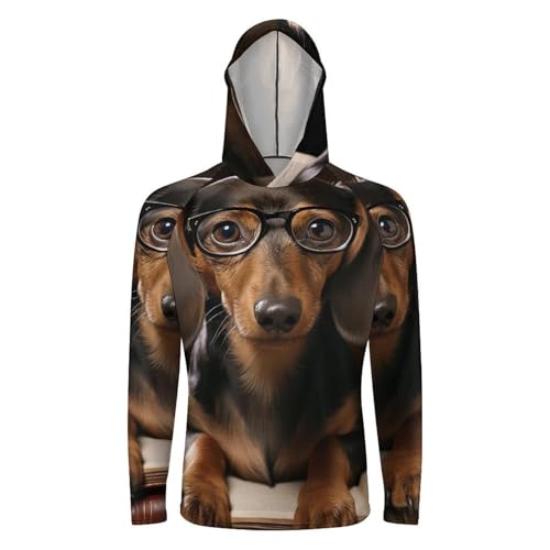 Mens UPF 50+ Sun Protection Hoodie Rash Guard Long Sleeve Sun Shirt Hiking Dachshund Dog Fishing Hoodie- 6
