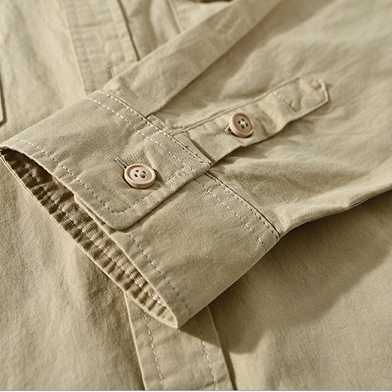Highlights - Perfect for both spring and fall seasons - Long sleeves for added warmth - Casual style suitable for men - Made of linen material - Ideal for vacations and other occasions - Featuring a button design and lapel neckline