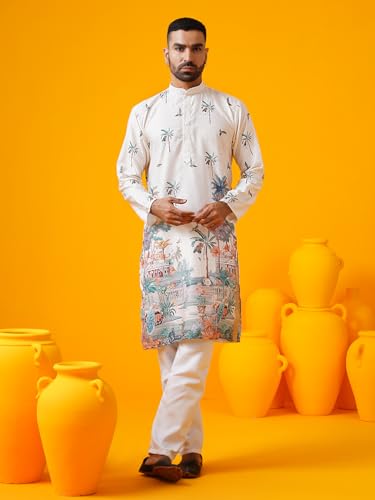 HOT ! Sojanya (Since 1958 Men'S Cotton Krochet Daman Print Long Kurta
