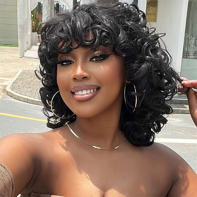 $24.99 - Short Curly Wigs for Black Women14 Soft Natural Black Synthetic Wigs for Black Women Cute Fashion Curly Wig with BangsAfro Kinky Curls Heat Resistant for African American Women Daily Use Party 2025. Shop for cheap Black & African Wigs online? Buy at lightinthebox.com on sale today!